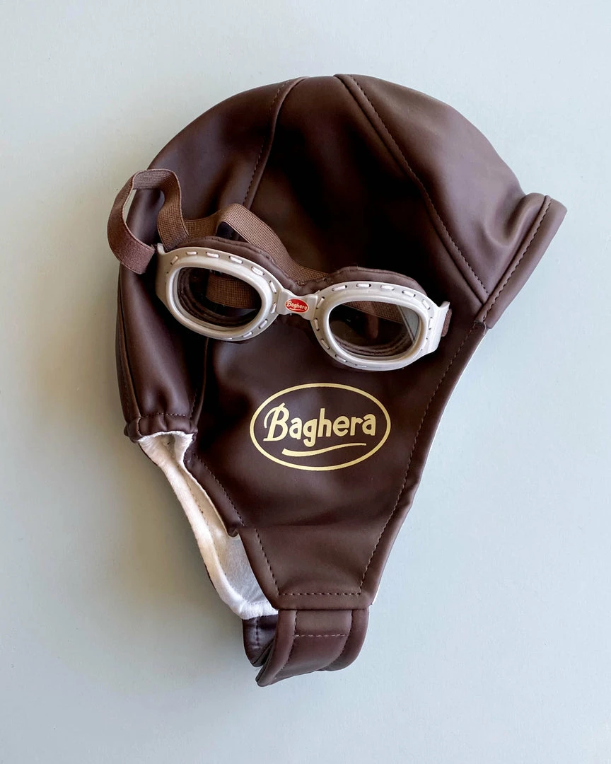 Designed for ages 3-5, this set includes a fabric/PU cap and goggles to match the the Baghera ride-on cars.