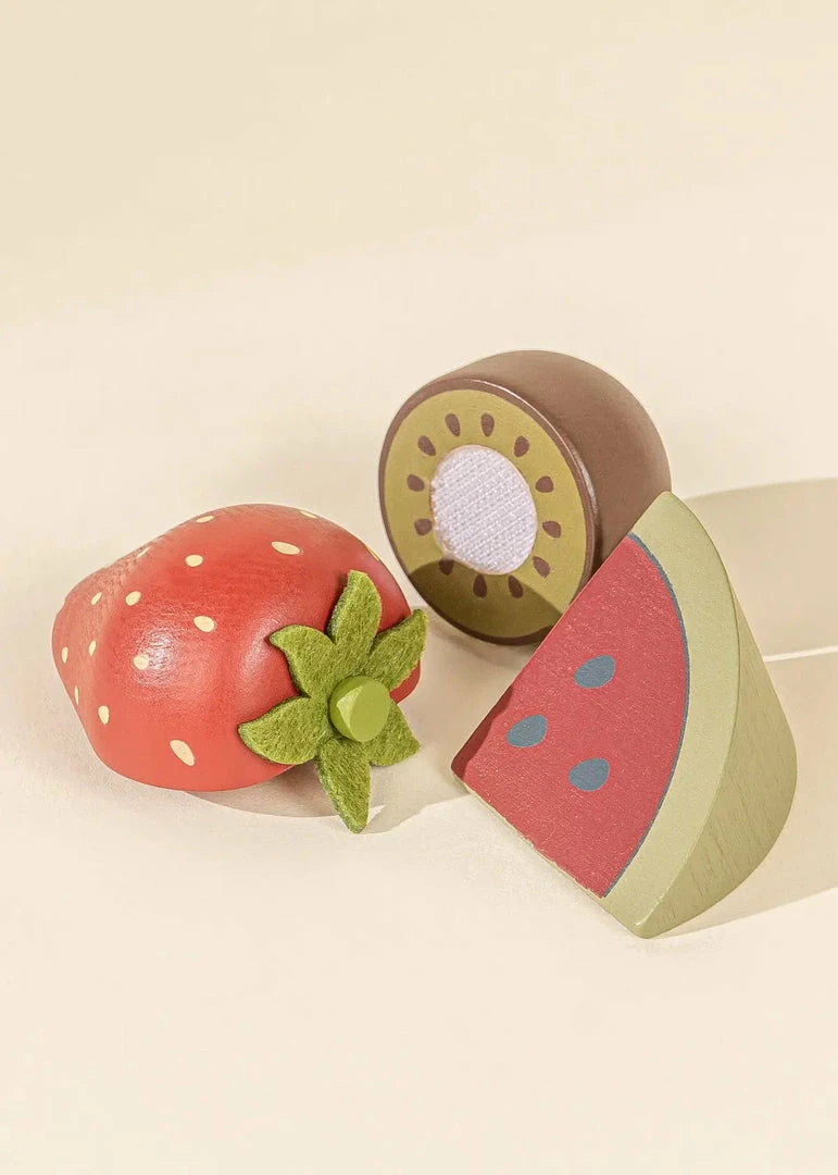 These beautiful fresh products are gonna be so good! This selection of 7 colorful fruits are a great addition to any wooden Mini-market or Kitchen. Plus, they are sliceable and come with the cutest wooden knife. Kids love to pretend play, which is perfect since imitation is an important and determining factor in the development of our little ones.