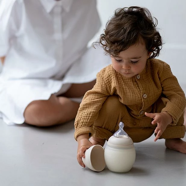 The baby bottle is made of pure silicone and new generation medical grade material. The Élhée BibRond does not contain bisphenol A (BPA), bisphenol S (BPS) or other substances that may harm the health of babies. Its unique and patented closure system excludes any risk of milk and its nutrients coming into contact with materials other than those of the silicone bottle and teat.