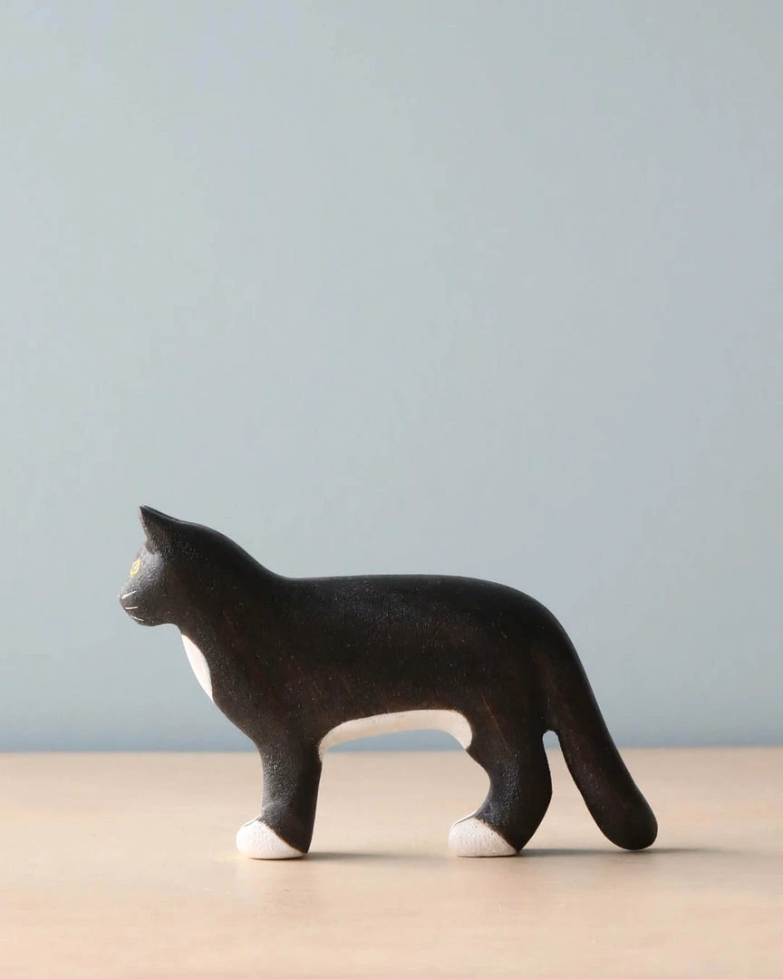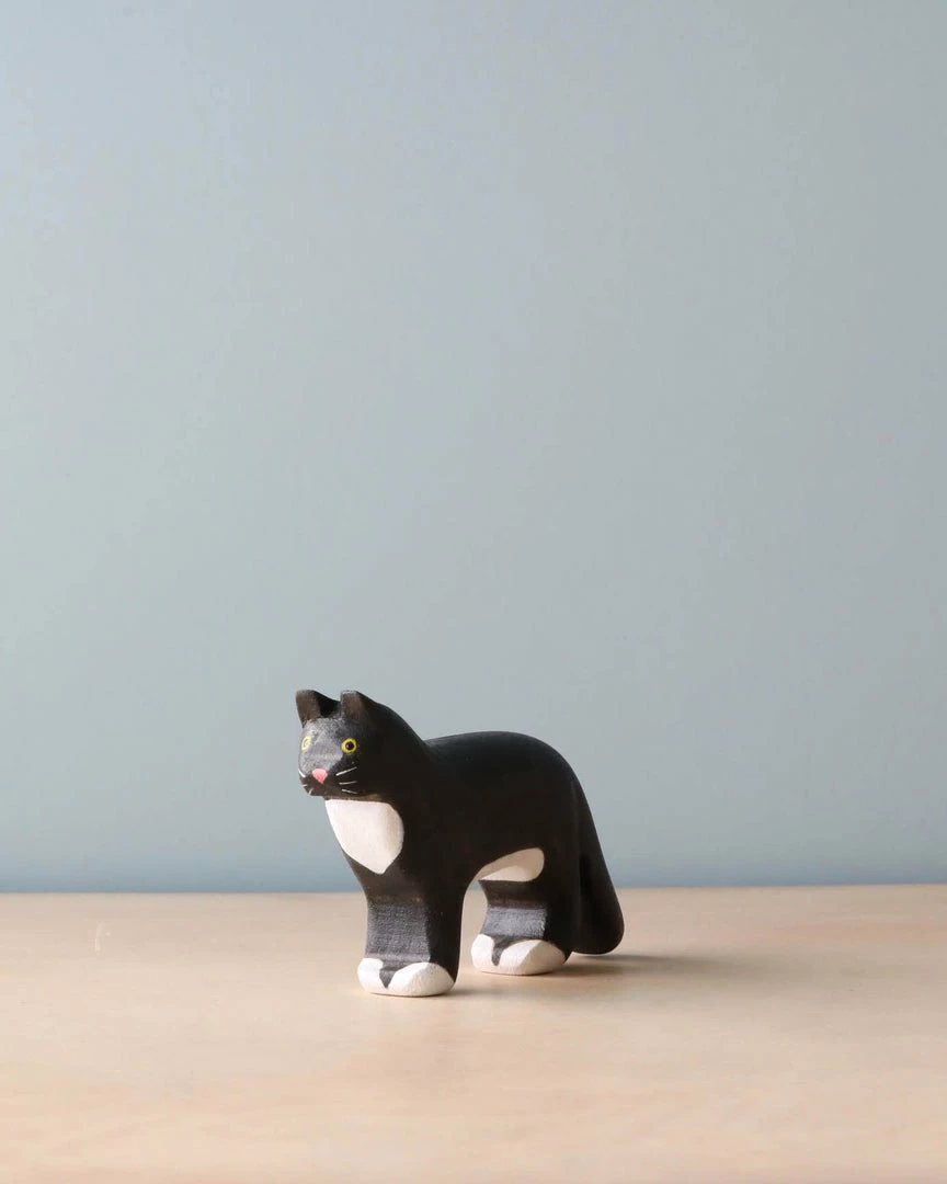 Handmade from alder wood and coated with organic linseed oil and painted with non-toxic, water based paint. Â
