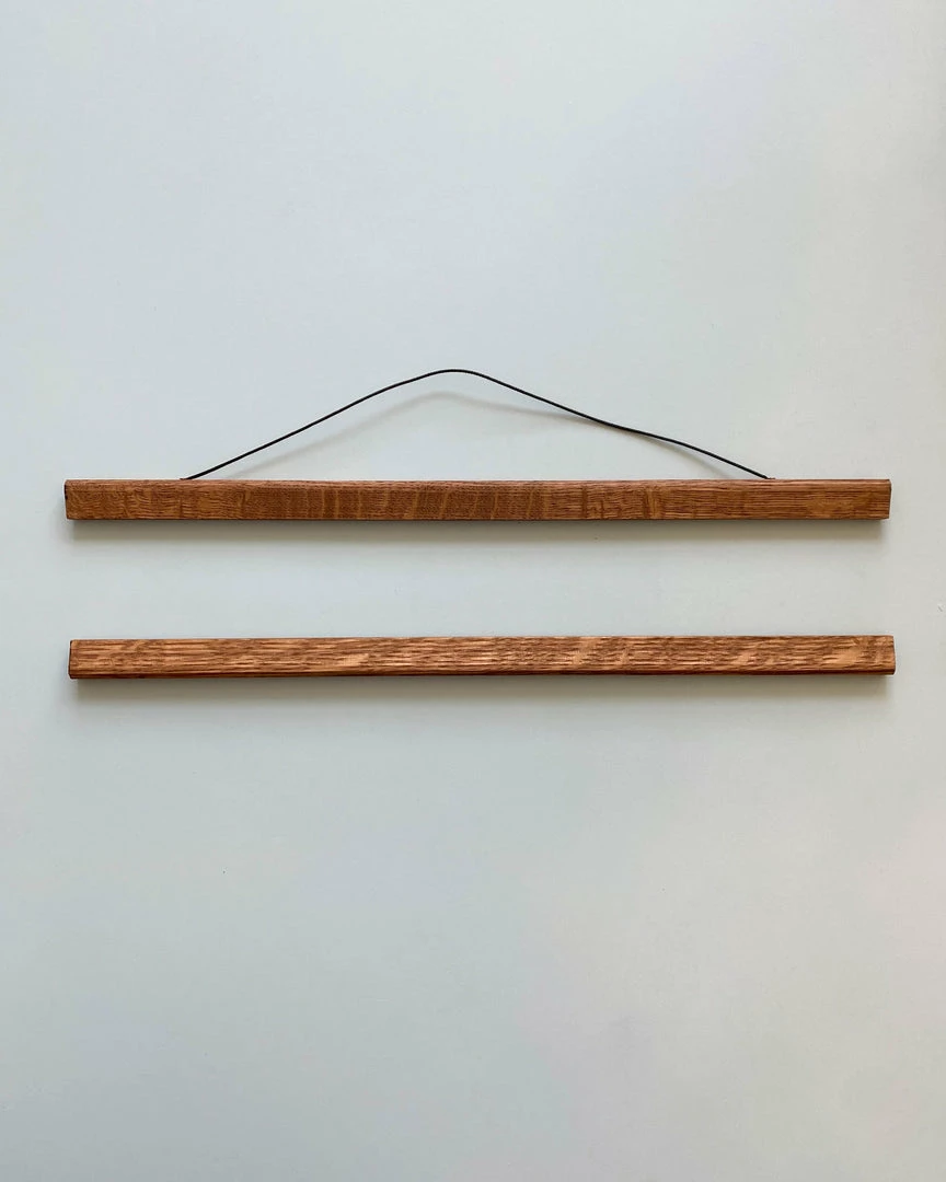 AÂ contemporary alternative to displaying your artwork around your home. This magnetic wooden poster hanger is designed and made in England from natural oak. The minimalist design has an innovative magnetic strip with a routed oak hanger, making fitting and rotating your canvas prints and art prints hassle free…no holes or screws!