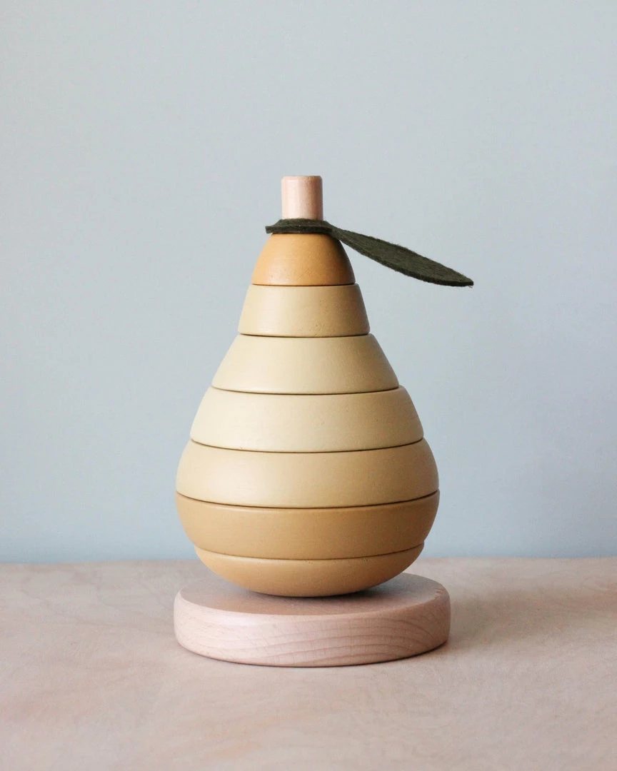 A gorgeous wooden Pear stacking toy, perfect for a little play session or room decor.