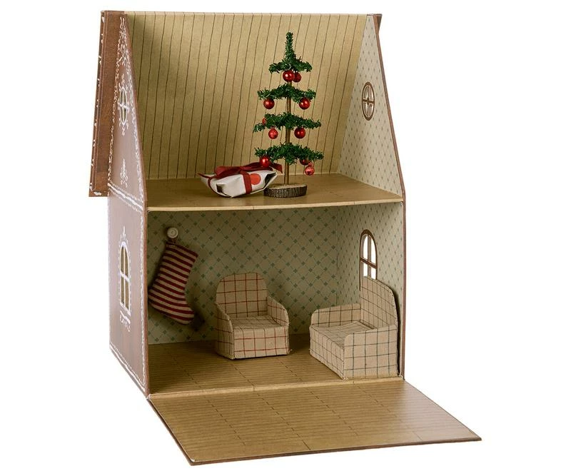 The Maileg Gingerbread House is designed for holiday surprises! Add your Advent gifts in the house and let your child decorate the rooms every Sunday when a new gift is opened. This house is the perfect size for micro Maileg friends and furniture.Â