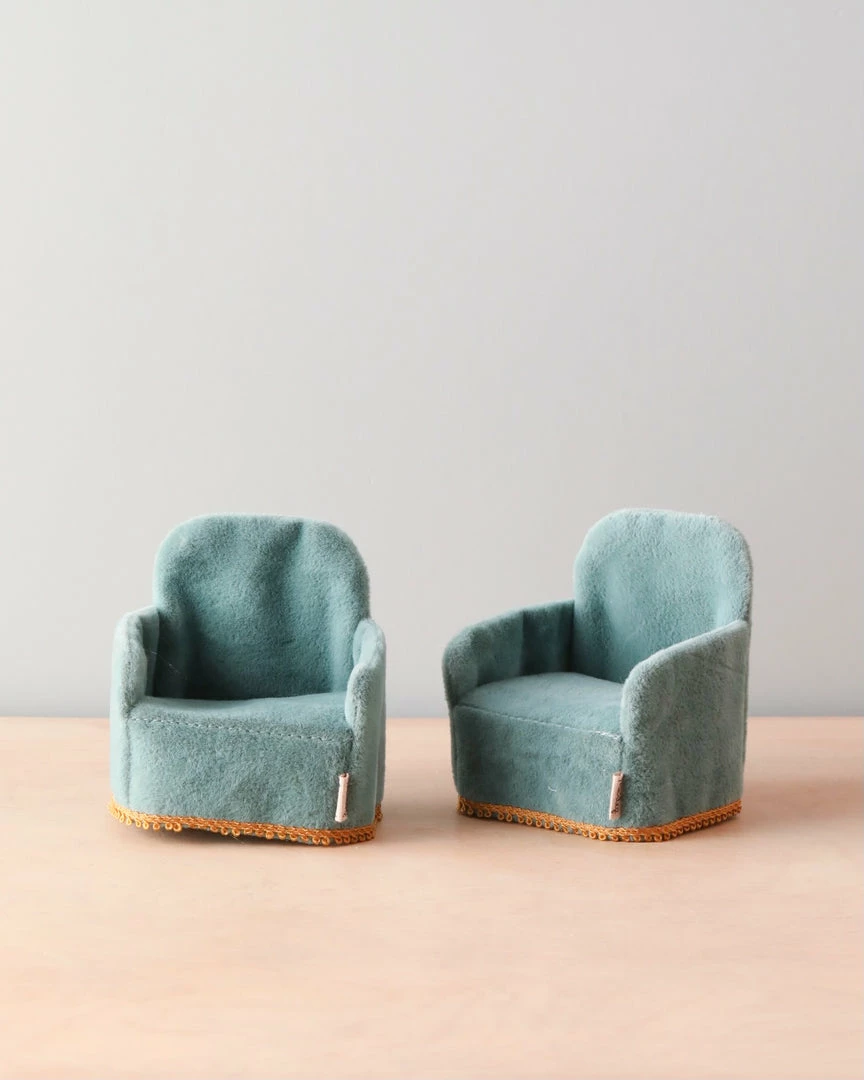 These chairs are the perfect place for your small Maileg friends to take a rest. This pack-of-two fits beautifully into the mouse castle. The chairs are delivered flat packed, very easy to fold and assemble.