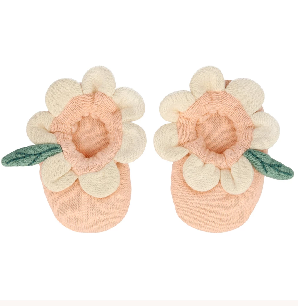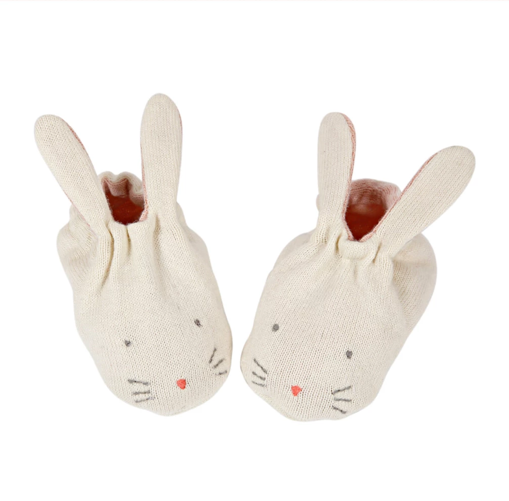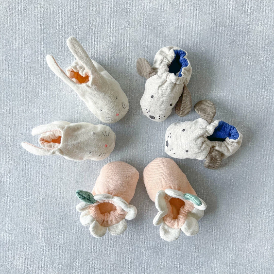 These adorable booties are carefully crafted from knitted organic cotton with a soft elastic band. They have delightful embroidered features. Presented in a beautiful drawstring bag. The perfect gift for a new arrival.