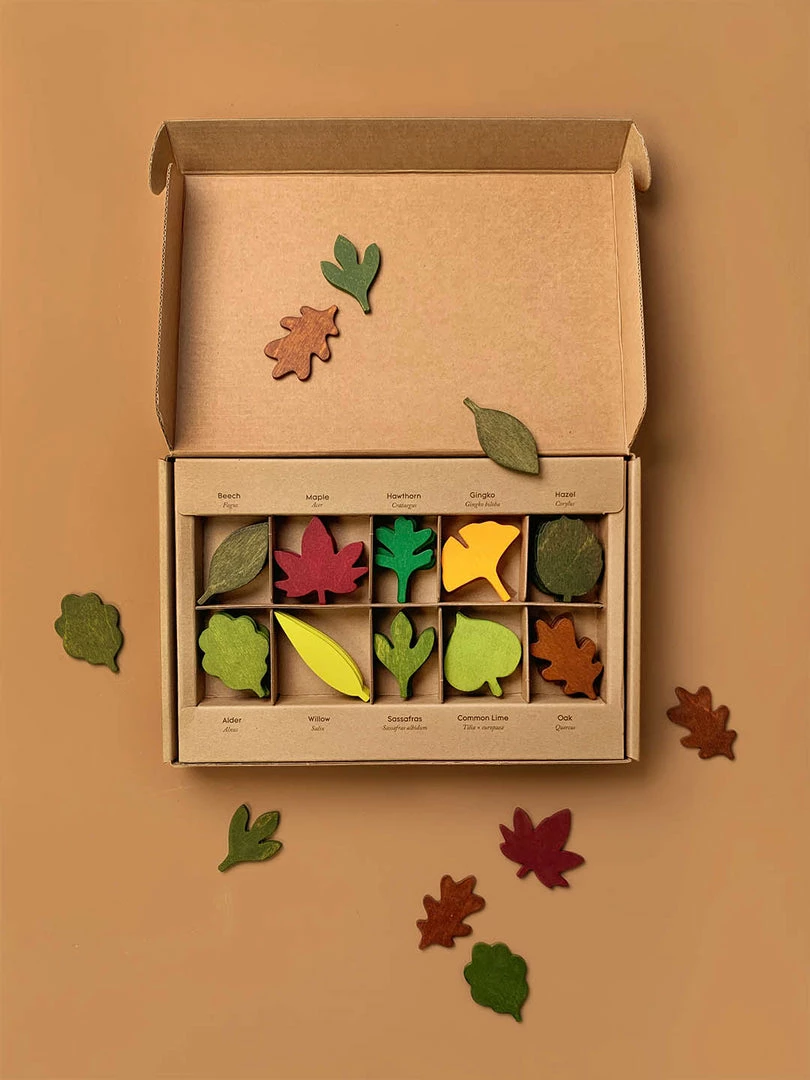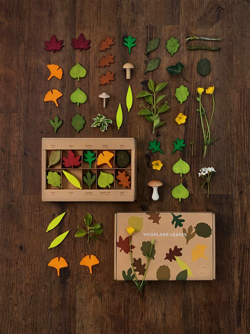 Learn to identify the leaves with different shapes and colors, count, match, make patterns, play games and create a scene for your story. There are endless play ideas with these wooden leaves for loose parts play.