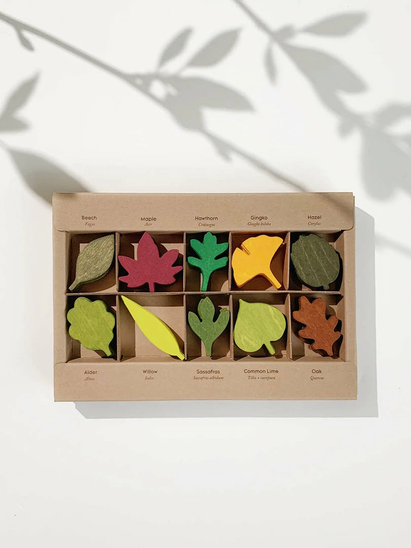 4 each of 10 different leaves including Beech, Maple, Hawthorn, Gingko, Hazel, Alder, Willow, Sassafras, Common Lime and Oak.