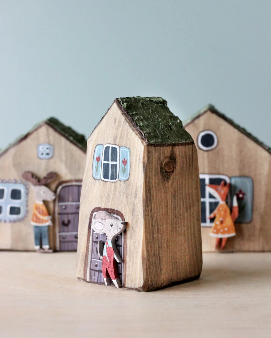 Entirely handmade and hand painted. Each set includes 3Â buildings.