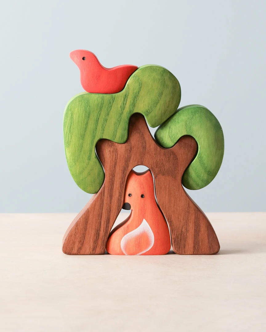 Handmade from ash wood and painted with water-based paint mixed with food grade flaxseed oil, which makes the paint semi-transparent to keep wood texture visible.