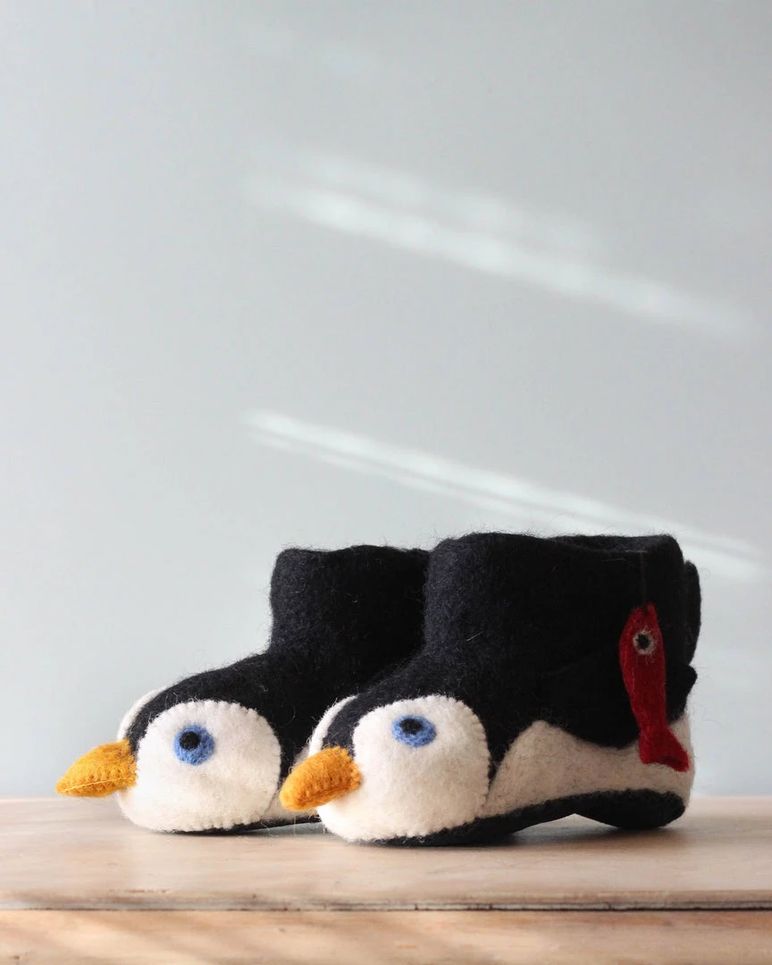 Handmade in Nepal, by artisan women who shape these slippers from wool, water and soap. The bottom of the slippers are made of suede.Â