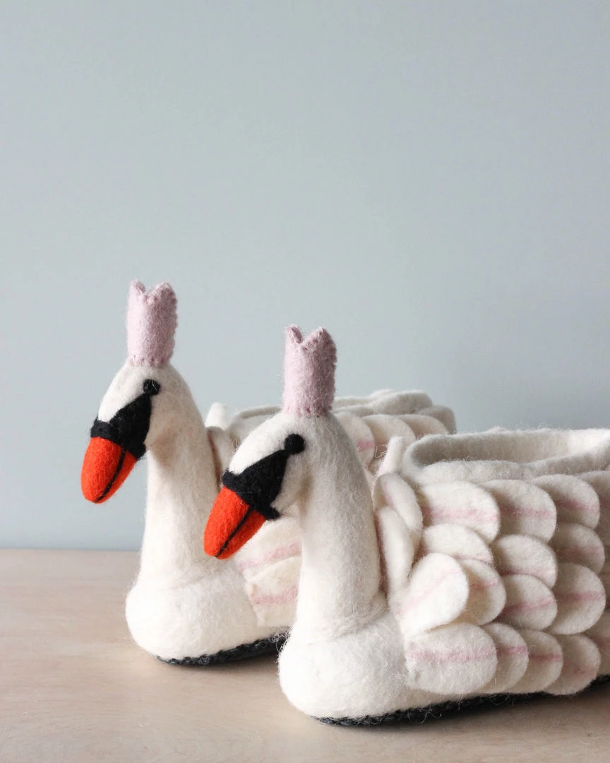 Handmade in Nepal, by artisan women who shape these slippers from wool, water and soap. The bottom of the slippers are made of suede.Â