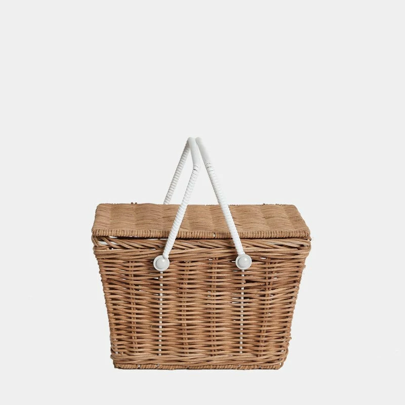 This basket includes an abundance of bread and pastries for the perfect pretend picnic. Each set comes with a rattan basket, one felt baguette, two felt bread rolls, two felt toast slices and a felt chocolate chip cookies.Â