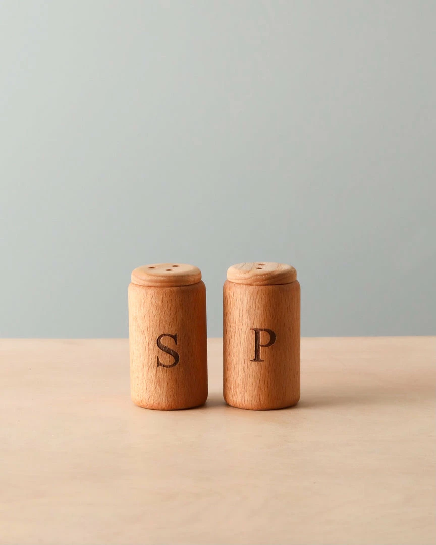 Handmade from ash wood, this salt and pepper shaker will make a rattling noise when you shake them!Â