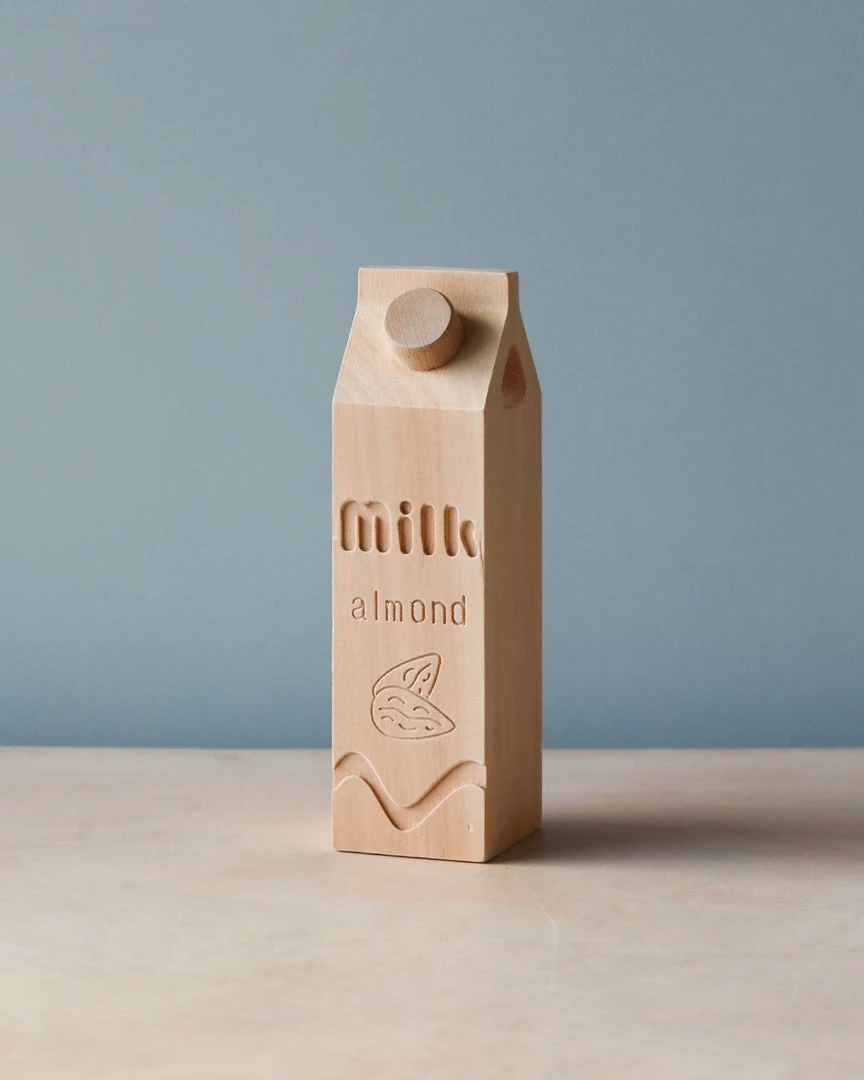 Made of linden wood and coated with natural biofa oil, this dairy-free milk is a great option for pretend play in the kitchen!