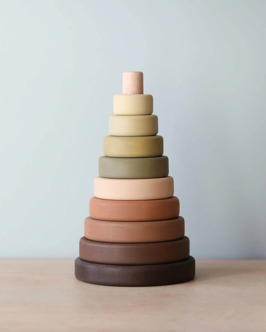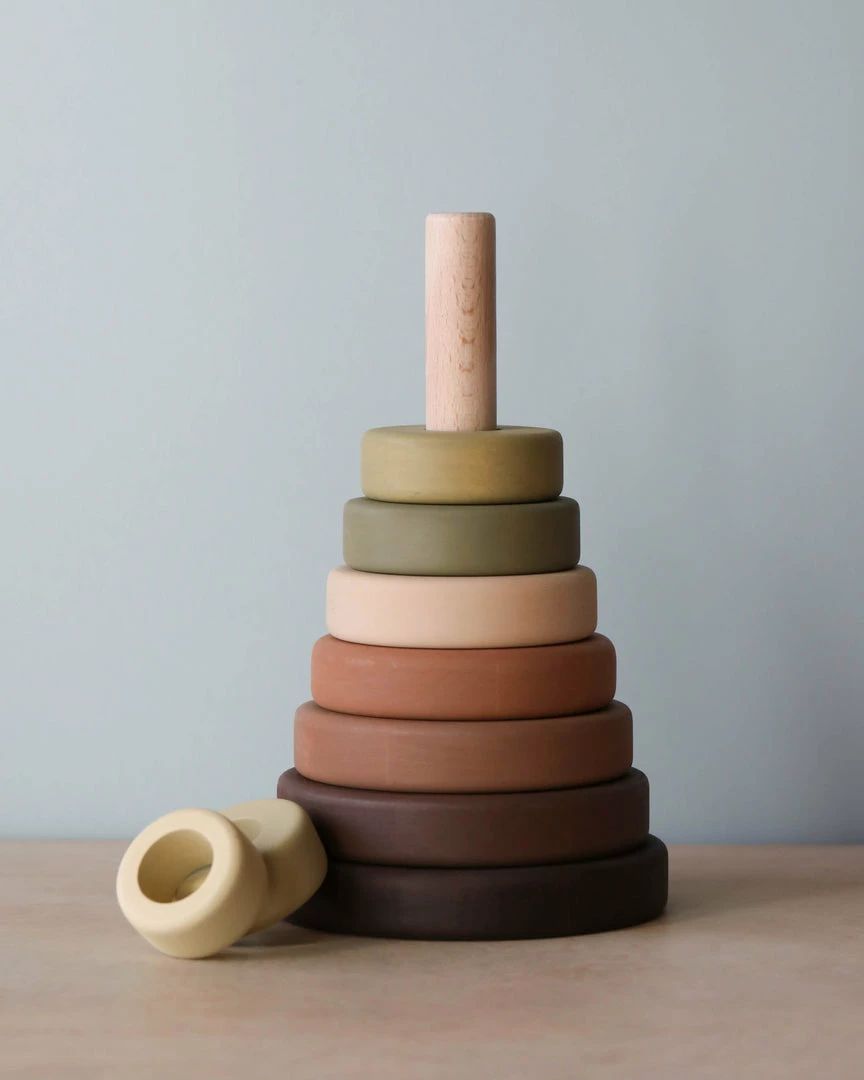 Handmade by Sabo Concept in Ukraine and painted with non-toxic, water-based paint. This stacking toy is great for hand-eye coordination.Â