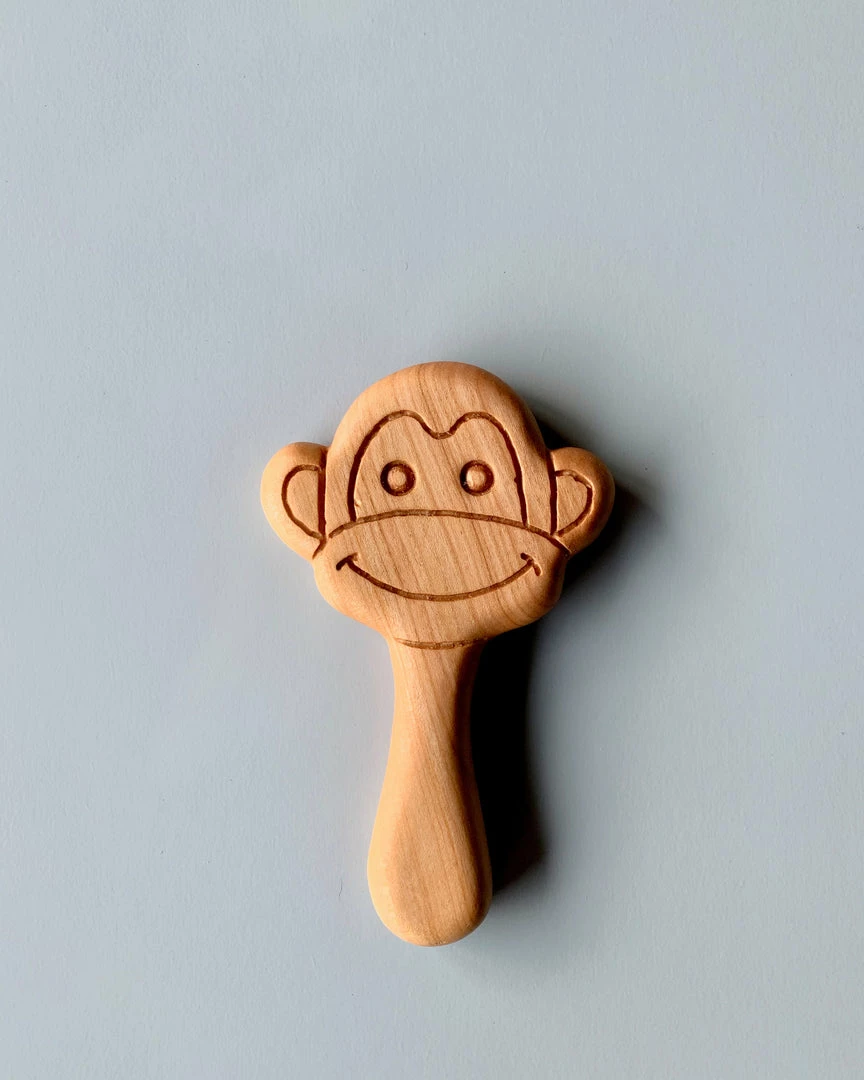 Handmade from cherry wood and soaked in linseed oil, this wooden teether is sanded meticulously to ensure that its smooth all around. Free of any harmful material, this is a great teether for little ones.