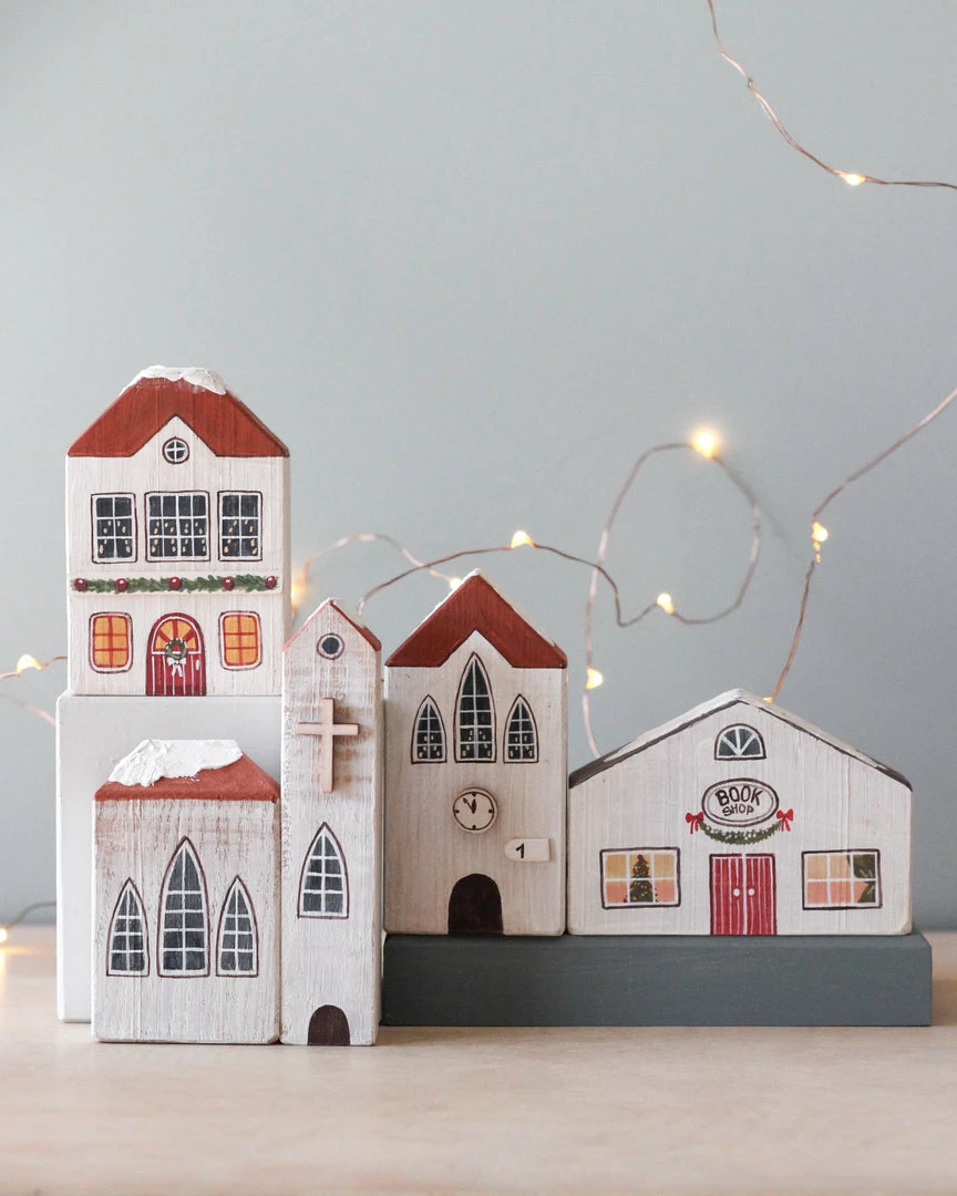 Entirely handmade and handprinted Christmas village.Â